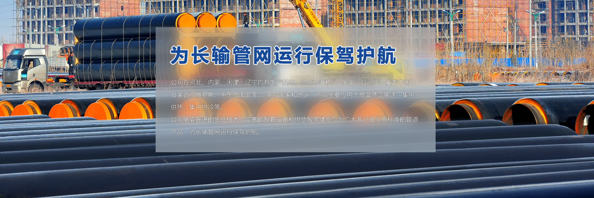 公司在河北、內蒙、天津、遼寧均有生產基地,總占地麵積500餘畝。公司產品覆蓋中國以及蒙古、俄羅斯、中東、南非等20 多個國家和地區,產品主要應用於高溫蒸汽輸送、集中供熱、集中供冷等。 公司依靠先進的生產技術、完善的配套設備和供貨服務體係,為廣大客戶提供高標準的管道產品,為長輸管網運行保駕護航。